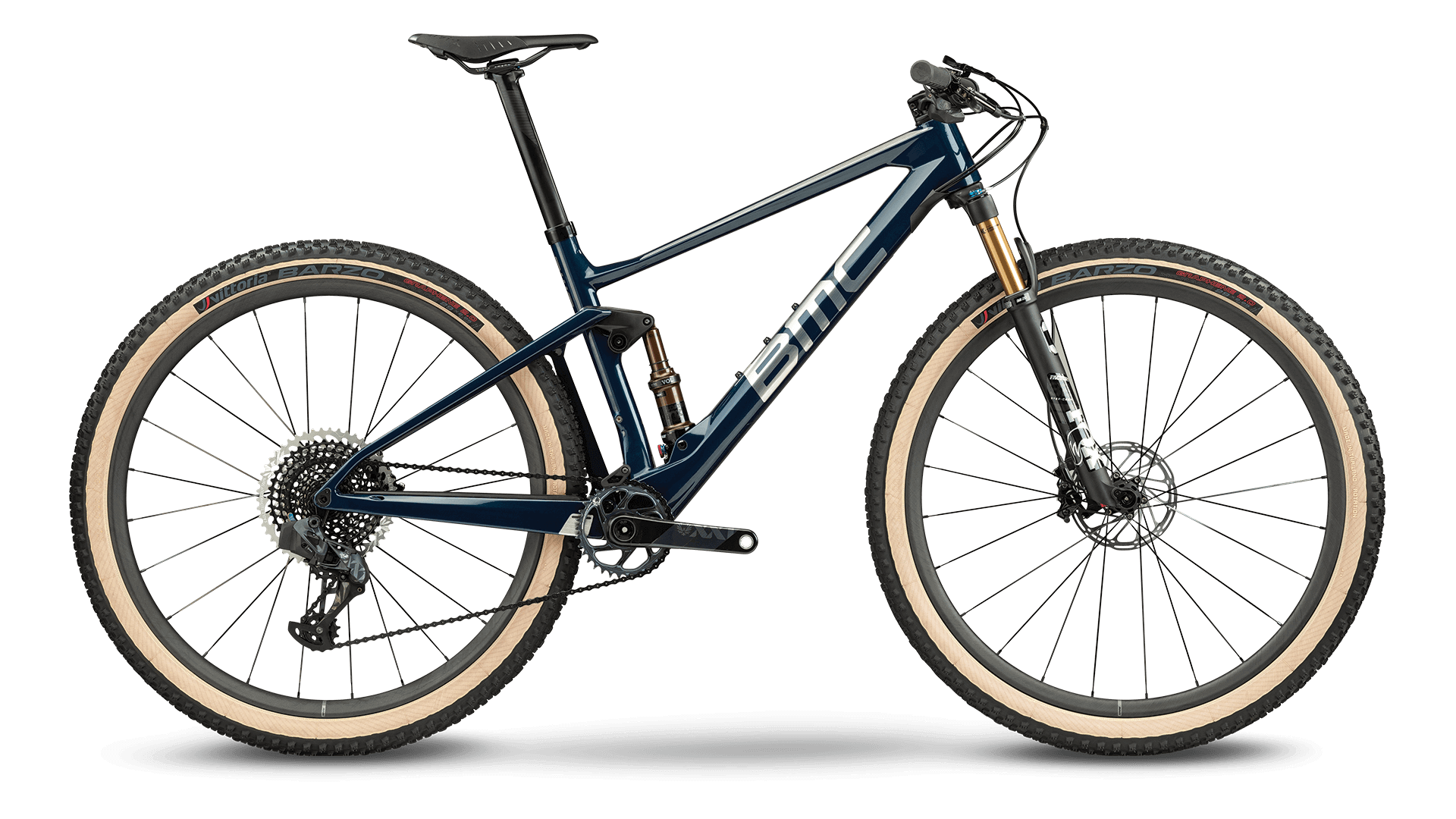 BMC Fourstroke 01 ONE är toppmodellen i serien och kommer med Fox factory-dämpare med 100 mm slaglängd både fram och bak. Smidig och snabb växling med SRAM eagle AXS elektriska växelsystem.